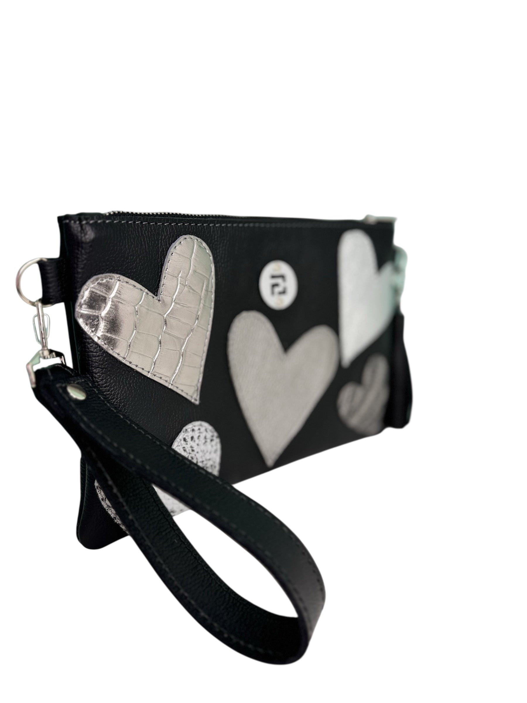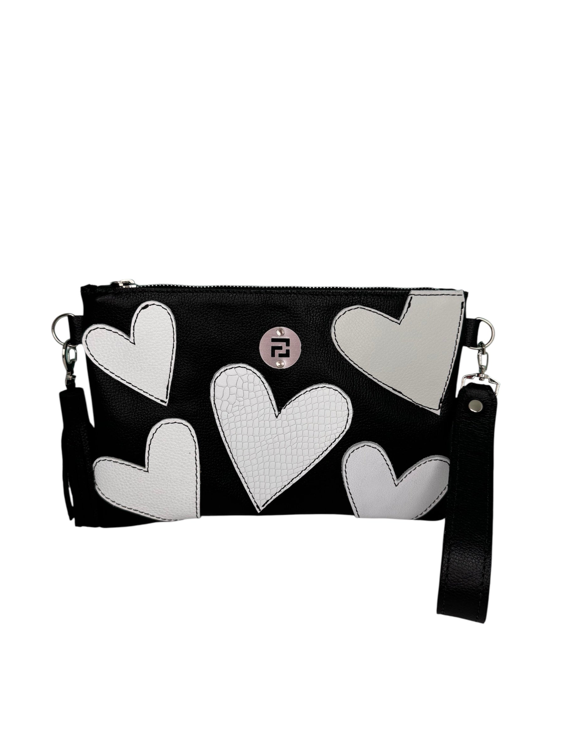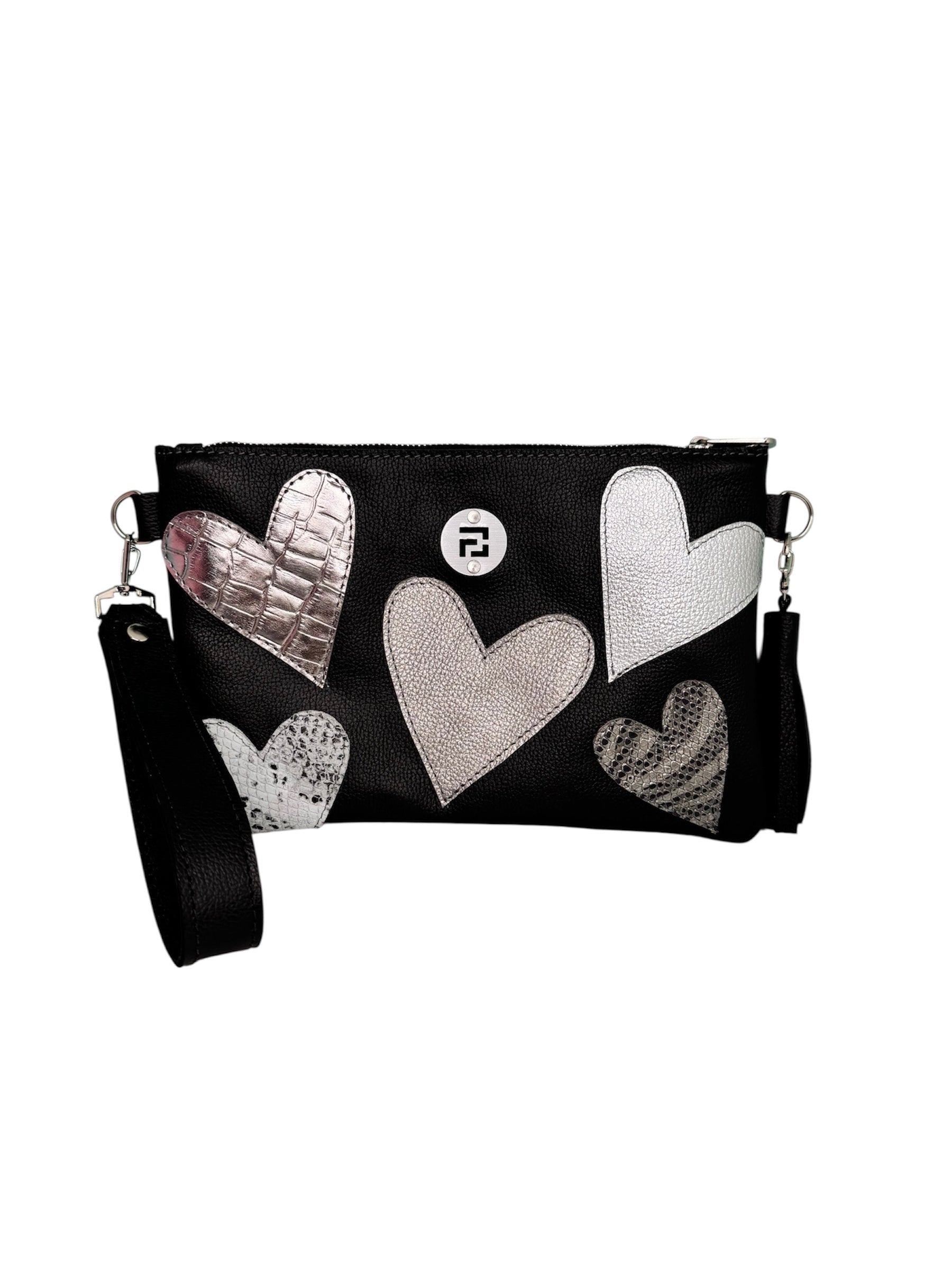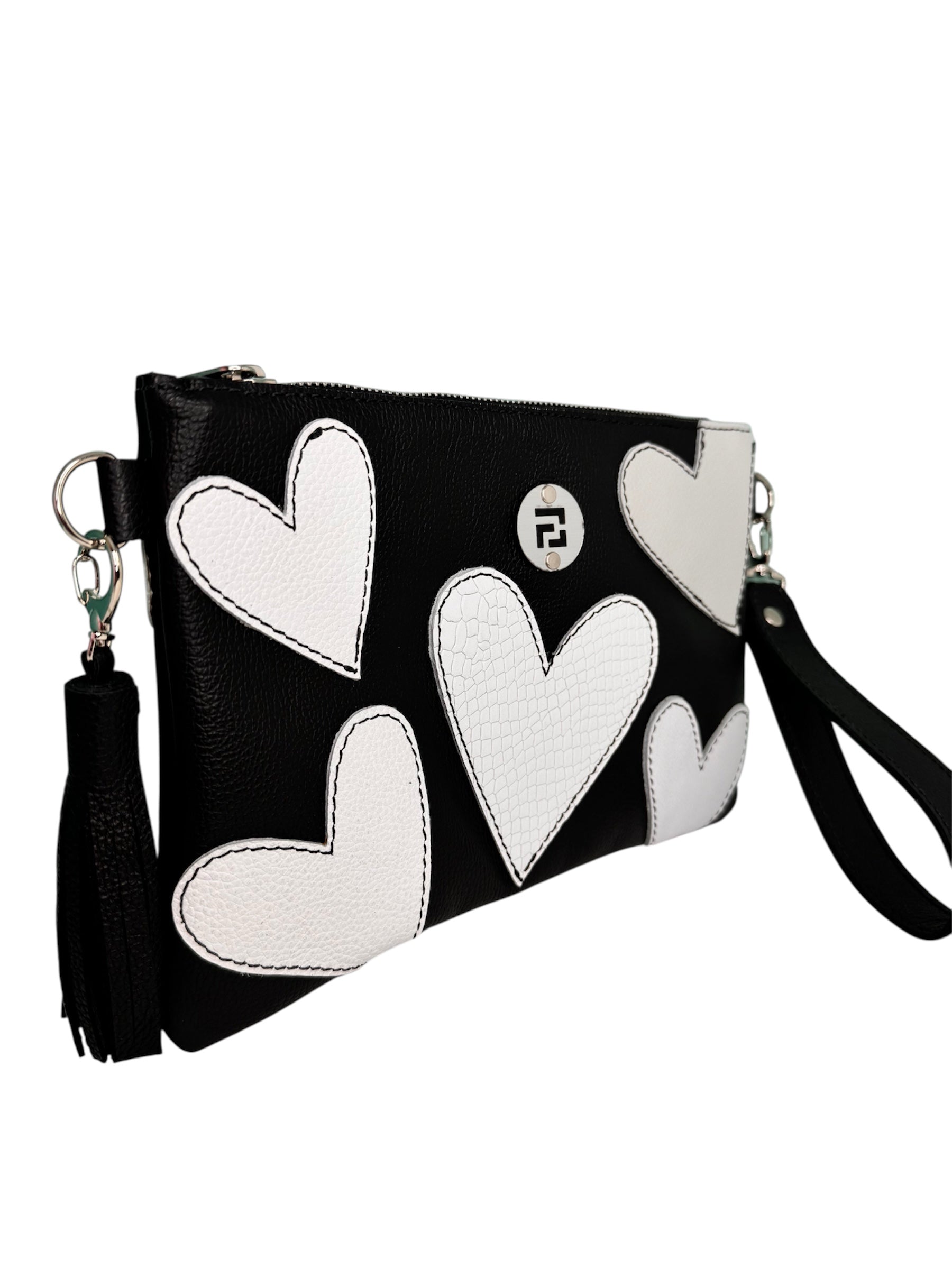 • Diseño único: Es reversible, con cada cara decorada con corazones de distintos tamaños, colores y texturas, dándote dos carteras en una para diferentes ocasiones.
