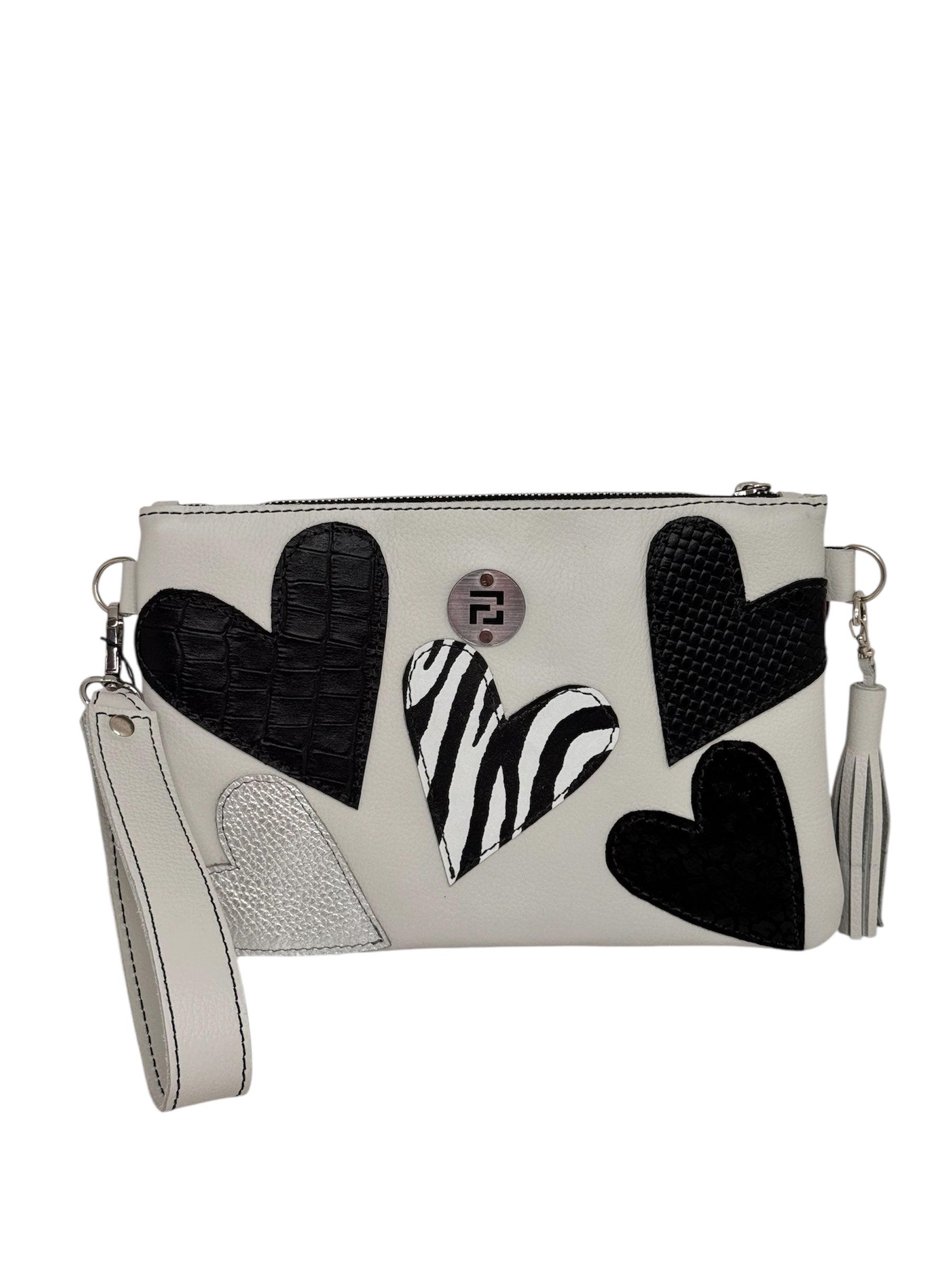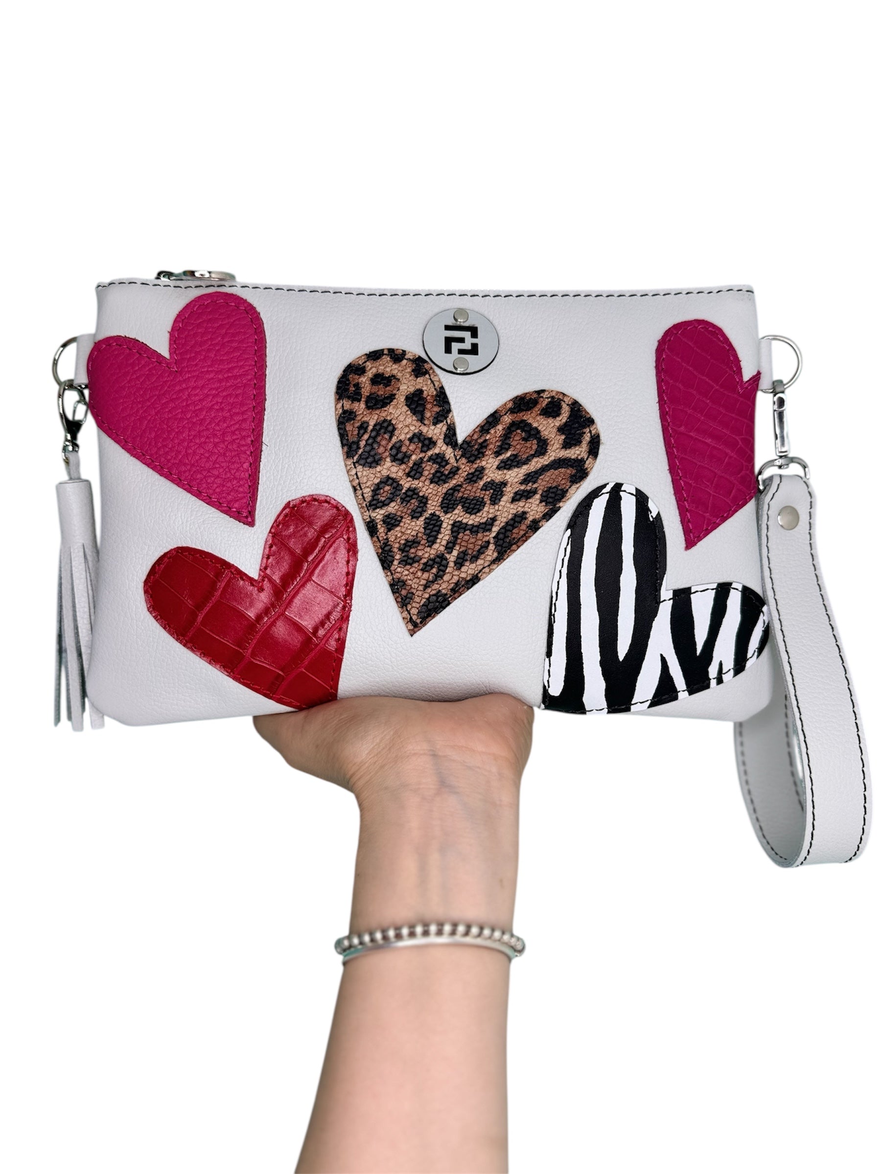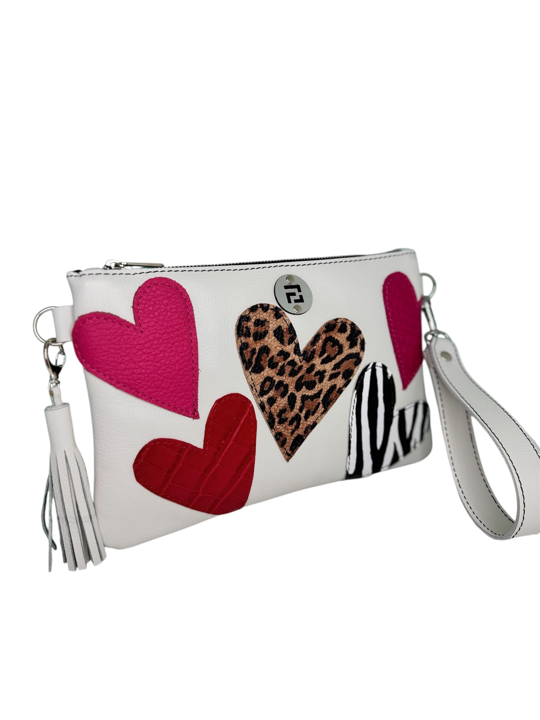 • Diseño único: Es reversible, con cada cara decorada con corazones de distintos tamaños, colores y texturas, dándote dos carteras en una para diferentes ocasiones.