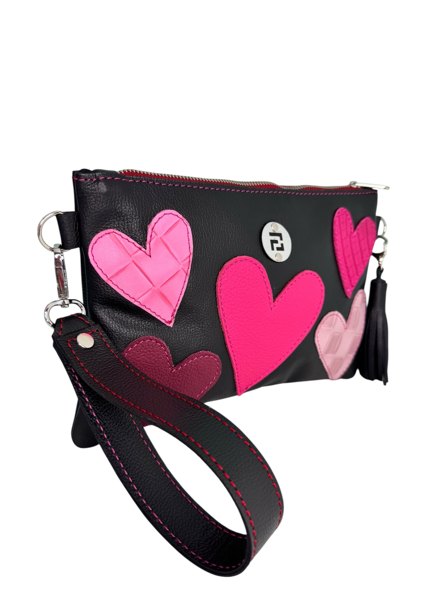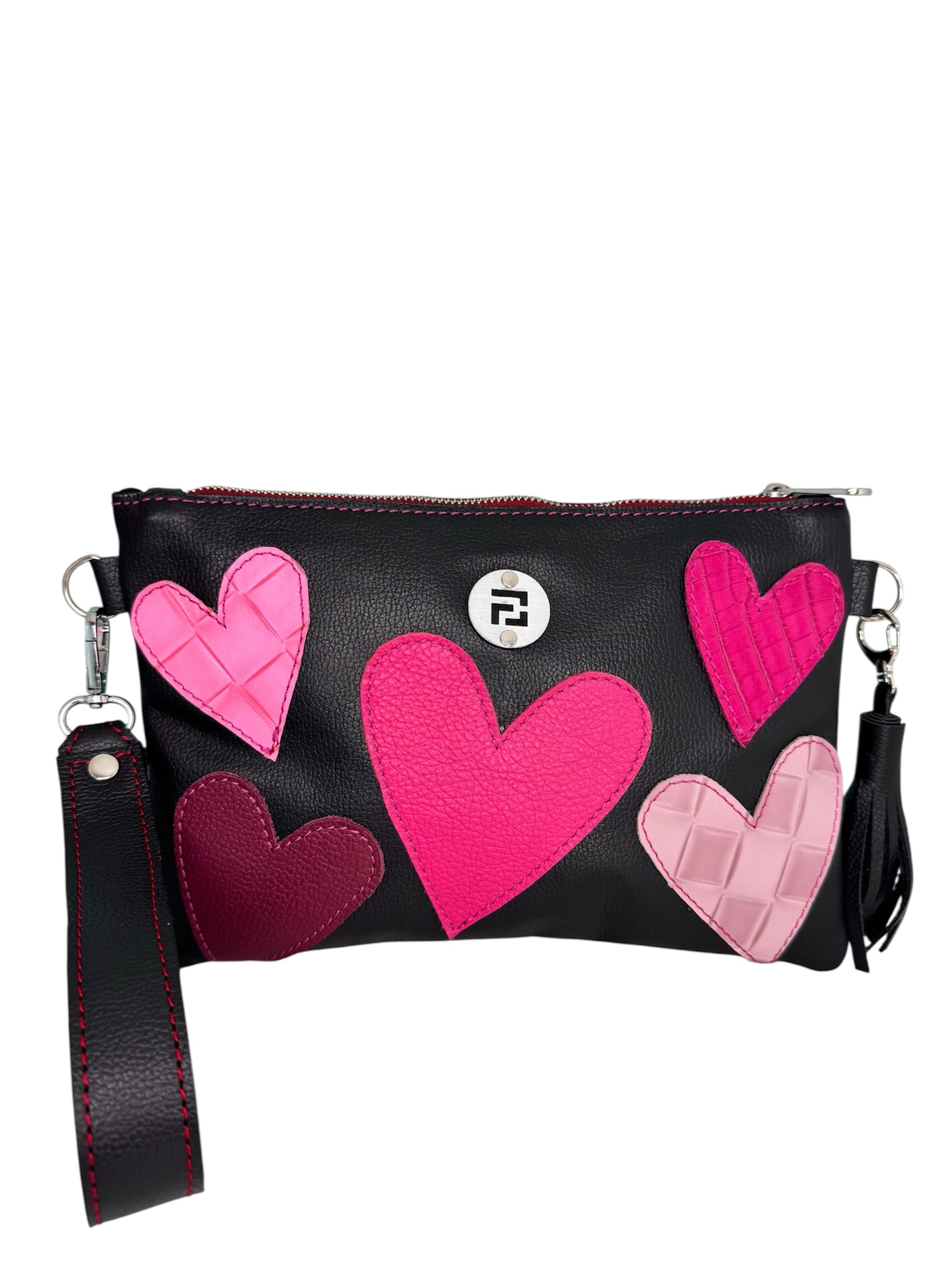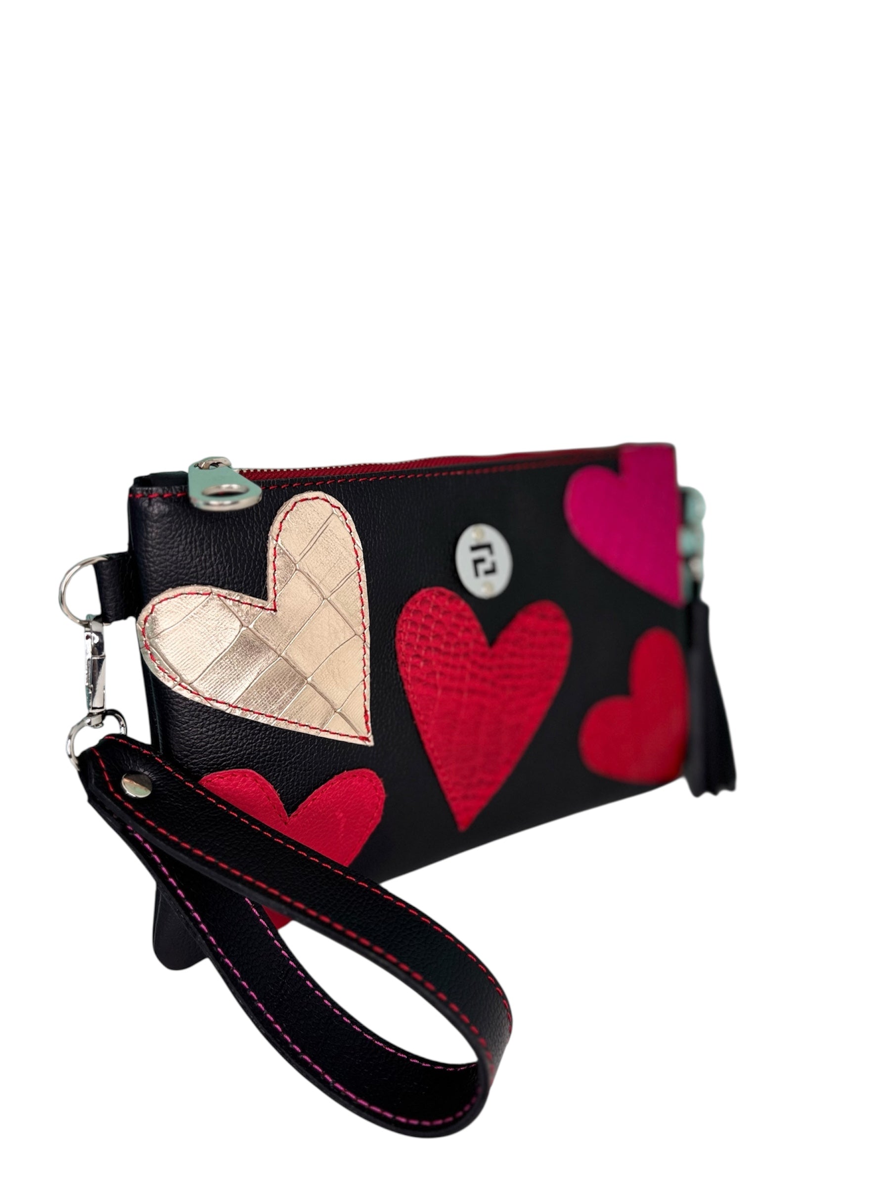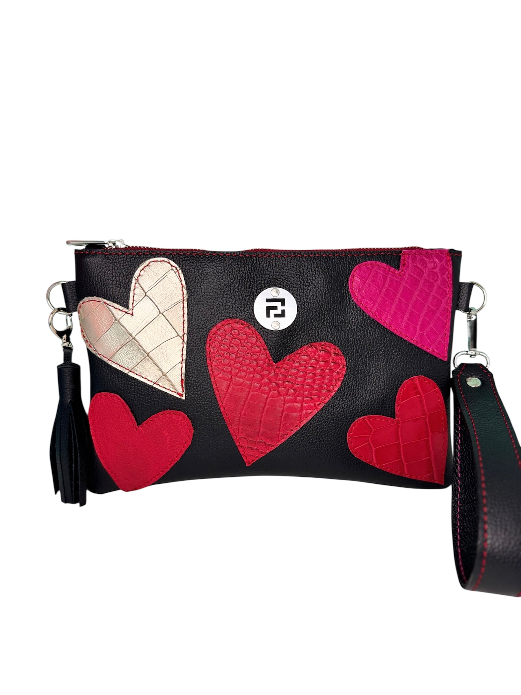 • Diseño único: Es reversible, con cada cara decorada con corazones de distintos tamaños, colores y texturas, dándote dos carteras en una para diferentes ocasiones.
