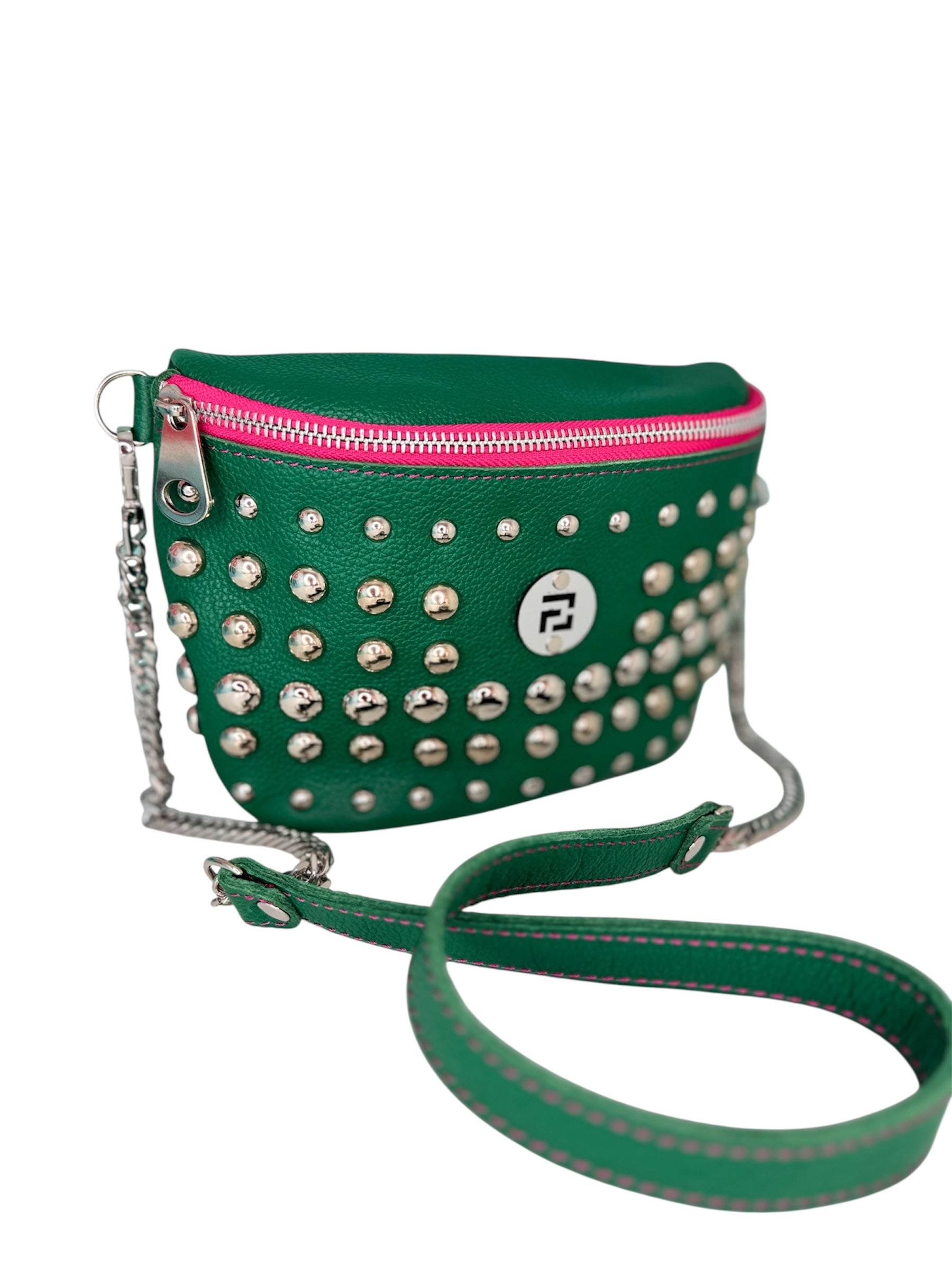 El Banano Bombón Tachas es un accesorio de cuero hecho a mano diseñado para quienes desean darle un toque audaz y moderno a su look.