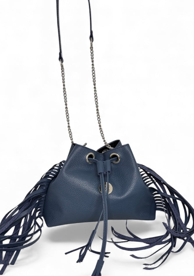 Su silueta compacta y moderna se complementa con flecos largos de 29 cm, que aportan movimiento y un toque auténtico a cada paso.