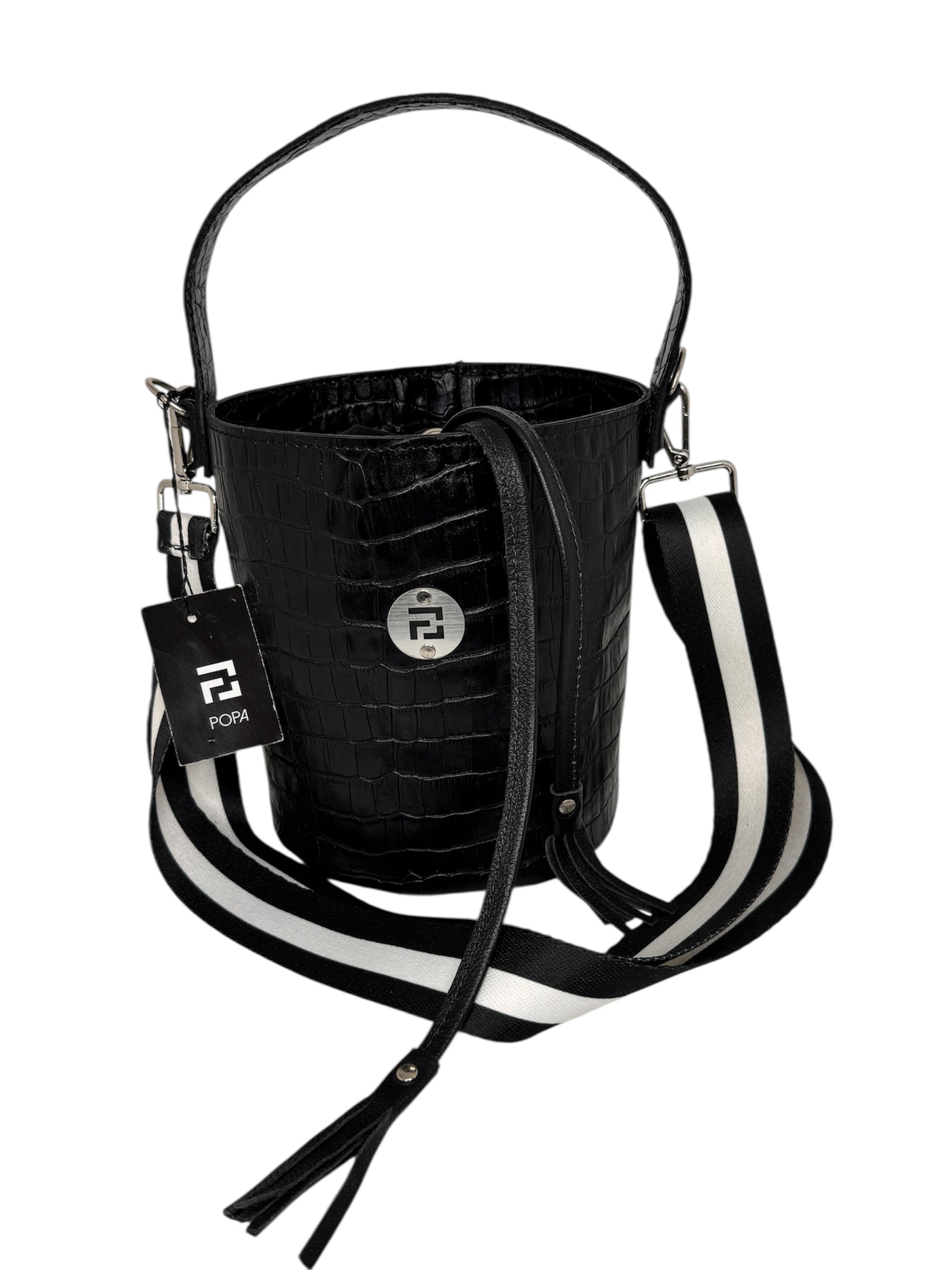 Sus medidas —18 cm de ancho, 20 cm de alto y un espesor circular de 15 cm— le otorgan una forma única tipo “bucket” que destaca en cualquier look.