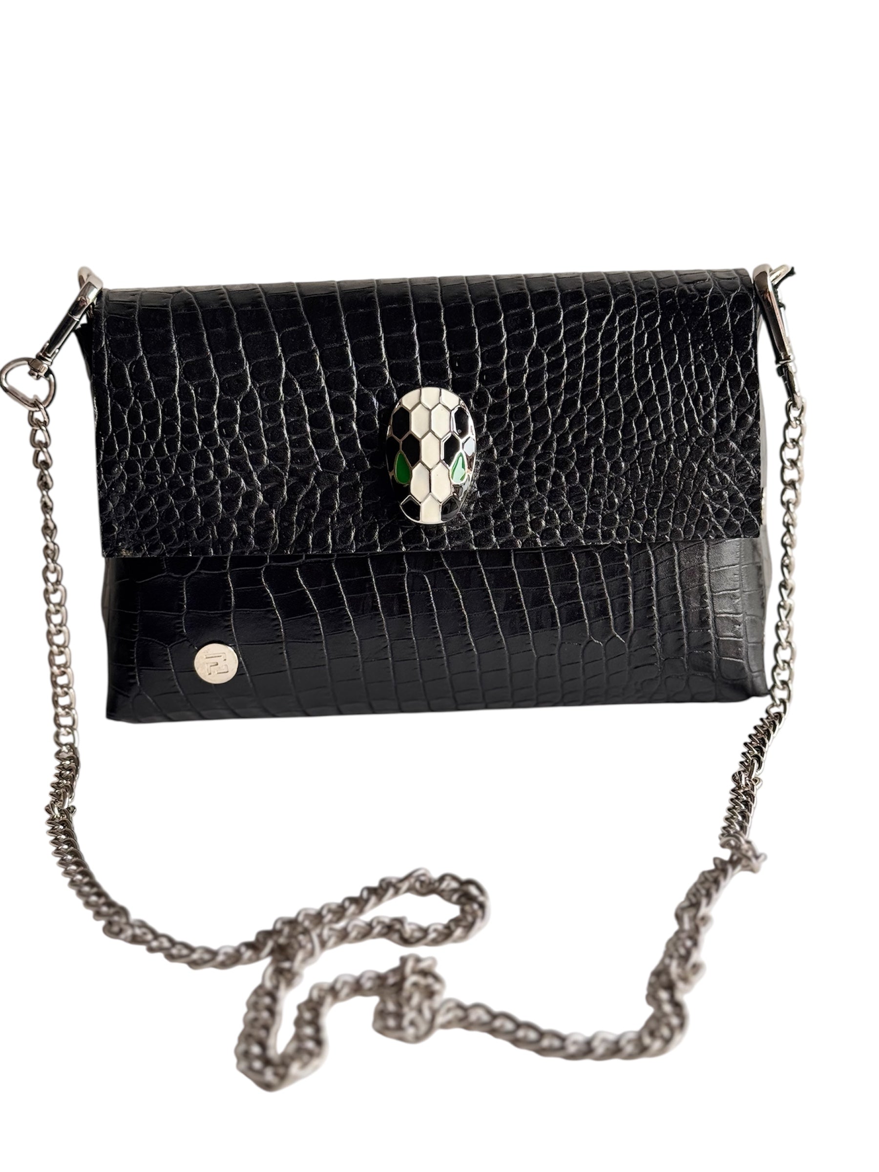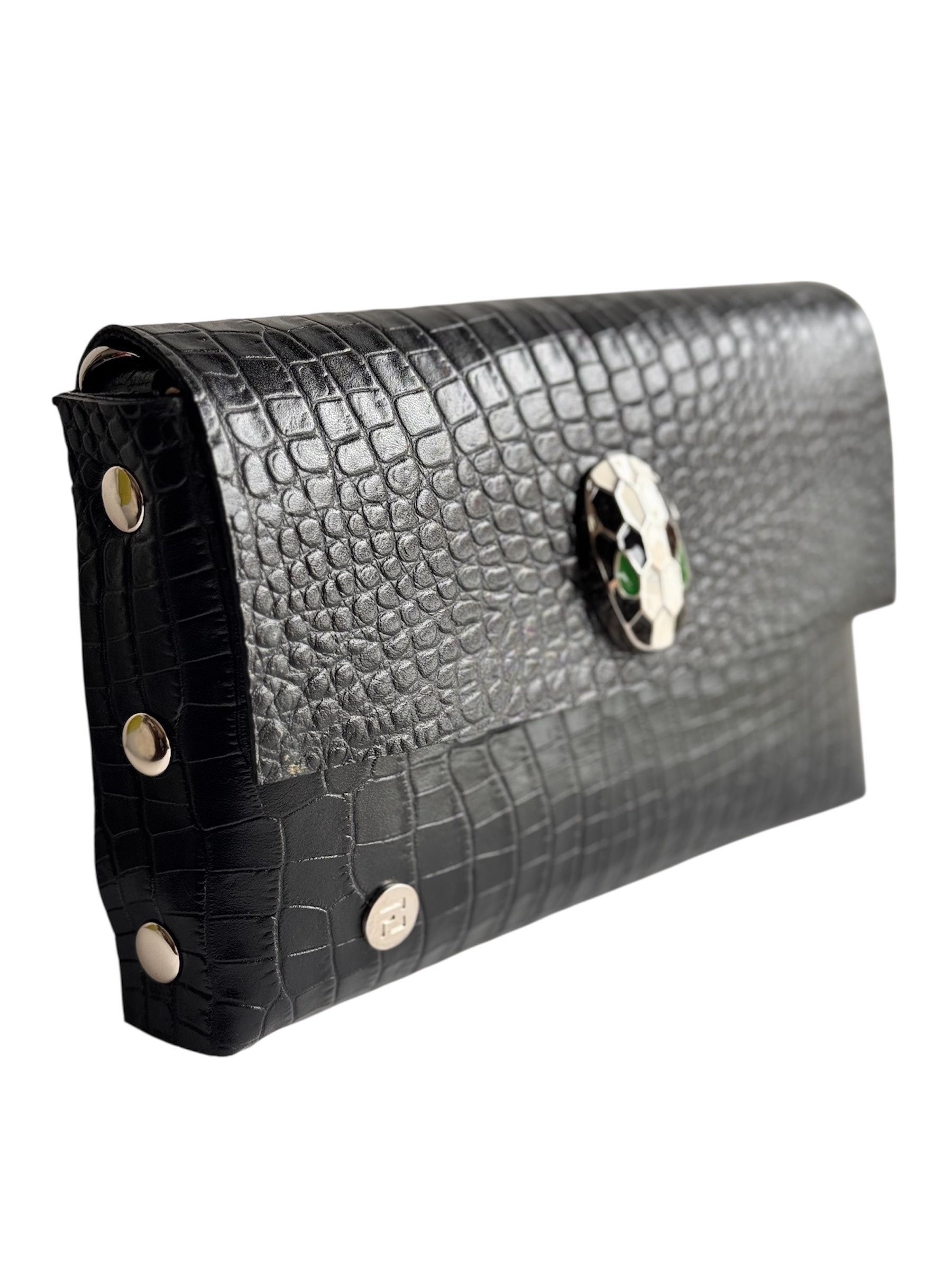 Compacta y liviana, sin costuras visibles y forrada en cuero delgado, perfecta para llevar lo justo con un acabado limpio y sofisticado.
