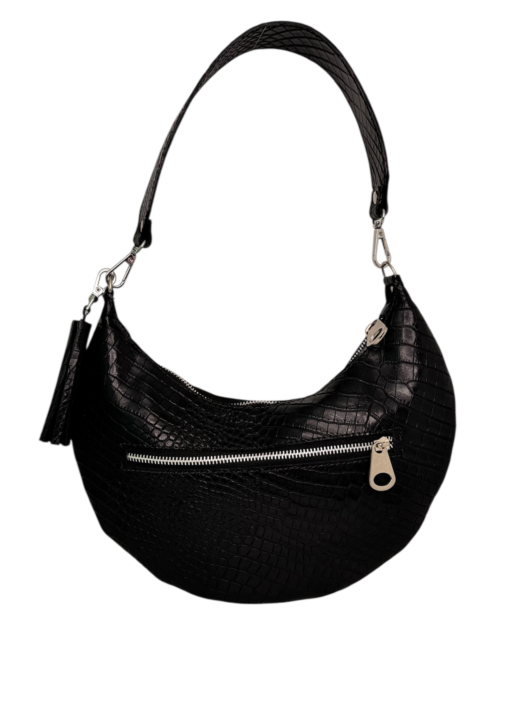 Incluye un práctico cierre trasero de 20 cm para acceso rápido y seguro. Ideal para llevar lo esencial con actitud.