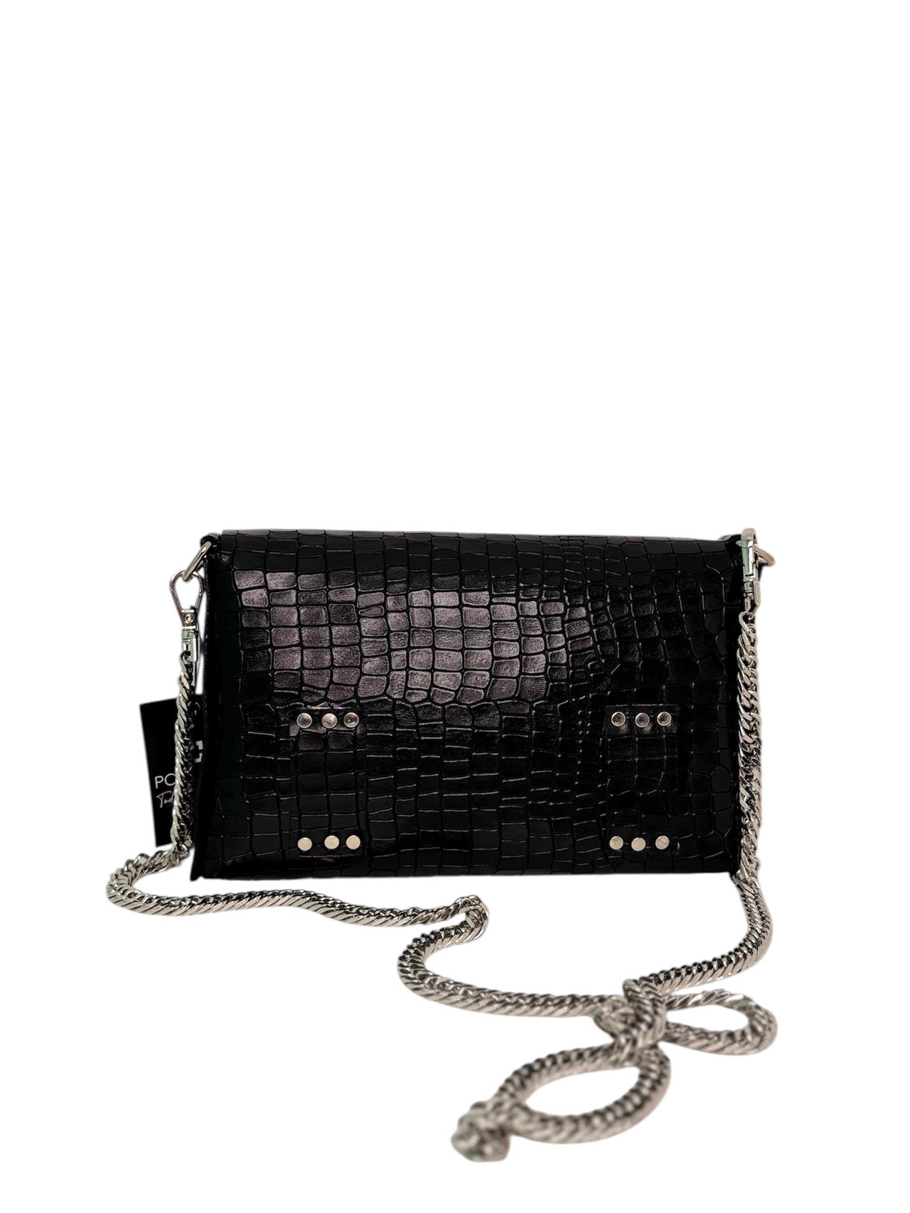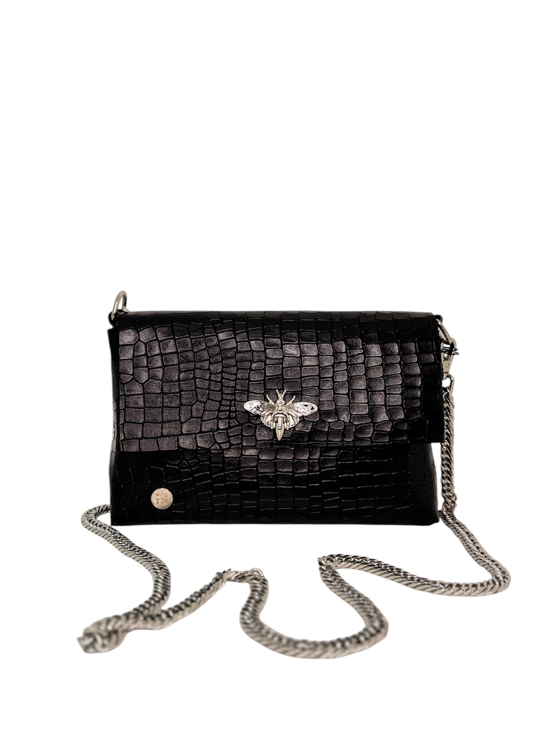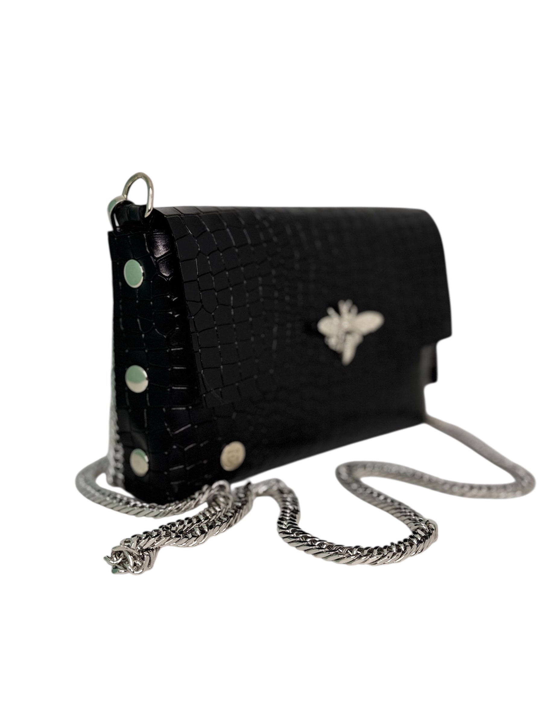 Compacta y liviana, sin costuras visibles y forrada en cuero delgado, perfecta para llevar lo justo con un acabado limpio y sofisticado.